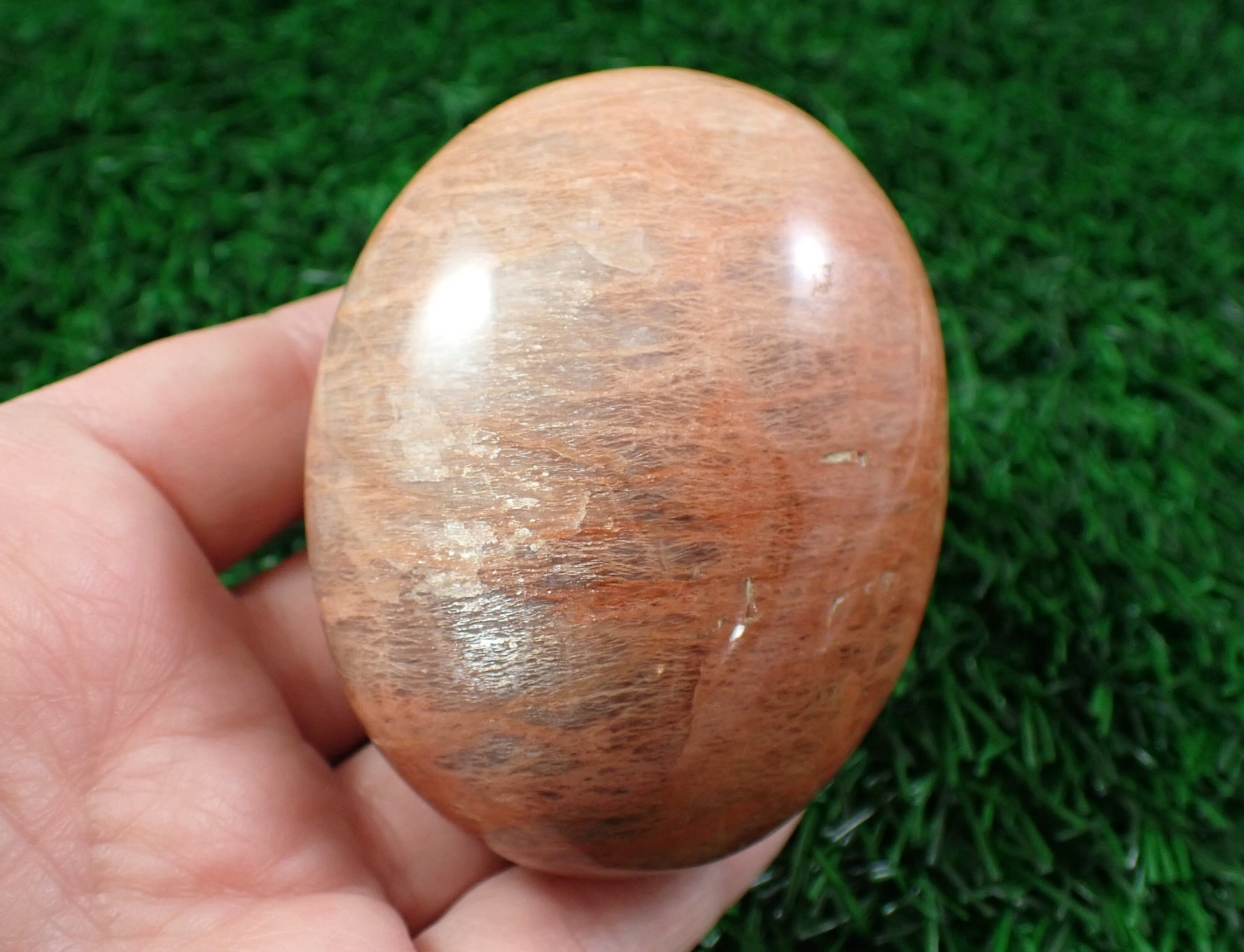 Gorgeous natural peach moonstone crystal palm stone. This is a larger and heavier piece that is in good condition with no chips or cracks. It is a super smooth polished nice stone that fits well in your palm. It is a deep peach color with a lot of flash. This is a natural crystal that has not been heat treated or dyed. This sale is for the exact palmstone shown in the photos.
