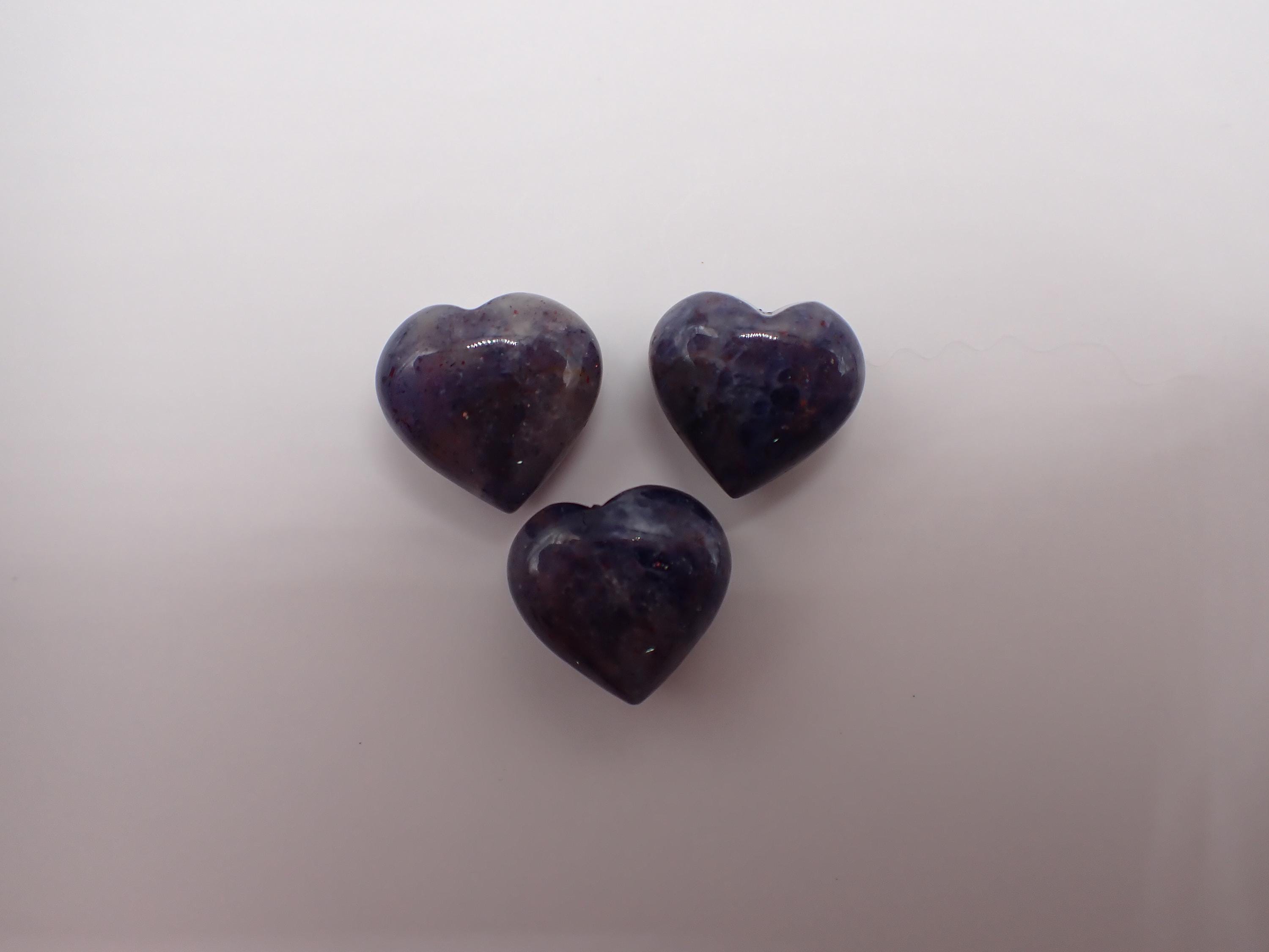 Lovely tiny natural iolite crystal hearts. These are small mini hearts, about a half inch in size. They have a nice smooth polished finish and they are natural crystals that have not been heat treated or dyed. Each order is for one of the hearts shown in the photos.